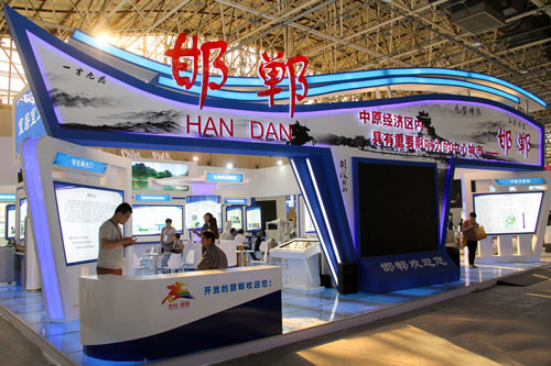 邯鄲館在眾多展館中,可謂“顏值”超高,無論場館建設(shè)還是展示內(nèi)容都極其豐富。邯鄲作為中華文明的重要發(fā)祥地之一,具有非常深遠(yuǎn)的歷史。從邯鄲館外部可以看出,一言九鼎,完璧歸趙,都像在訴說邯鄲的歷史與文化。今年518洽談會,邯鄲主打“中原經(jīng)濟(jì)區(qū)內(nèi)具有重要影響力的中心城市”從多個(gè)方面令世界了解邯鄲,走進(jìn)邯鄲。