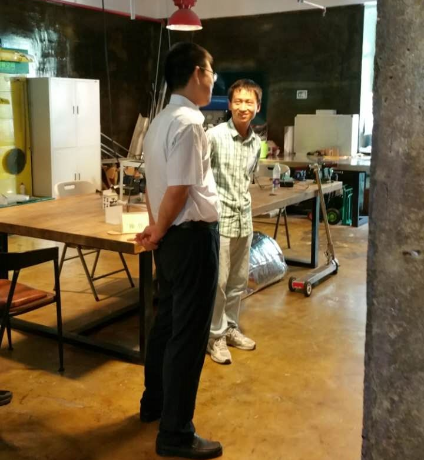 接下來參觀了“90后創(chuàng)客劉詠名”自主研發(fā)的極簡電動滑板車,劉詠名向喬主任介紹了產(chǎn)品的優(yōu)勢并正在積極申請專利,同時表示自己在DCT創(chuàng)客空間內(nèi),享受到了很全面的孵化服務,并對未來的發(fā)展非常憧憬。喬主任表示非常欣慰,同時也提出了中肯的意見,希望劉詠名可以再接再厲,創(chuàng)造更高的輝煌。